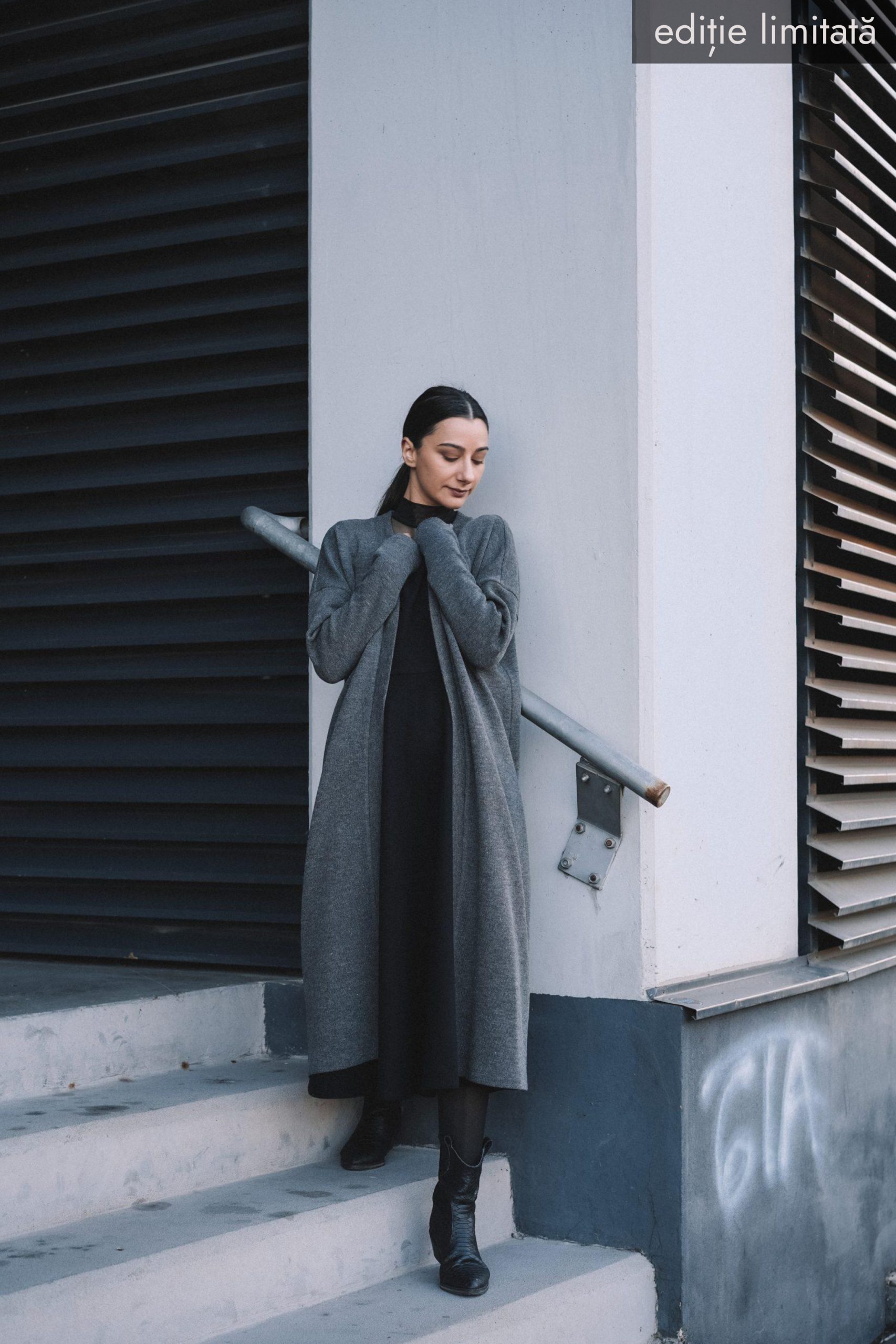 Cardigan oversized din tricot cu lână în proporție de 50%, ușor aspru datorită compoziției cu lână. Creat sustenabil în atelierul nostru.
