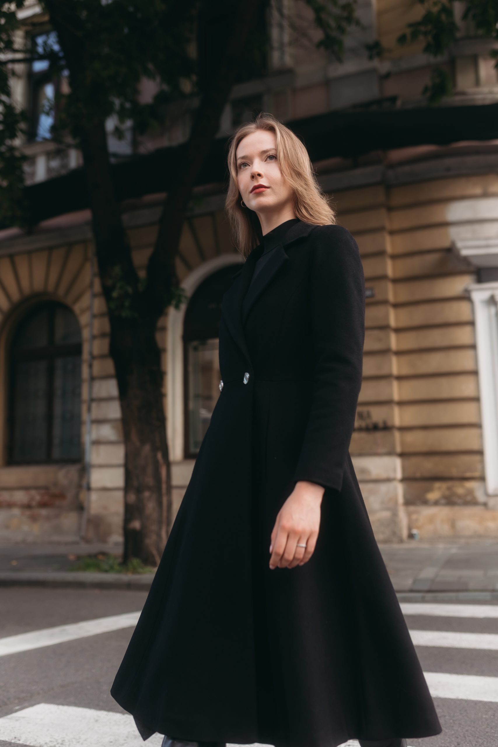 Palton cambrat și elegant, bine structurat pe forma corpului, cu accent pe talie. Din stofă premium de lână cu cașmir.